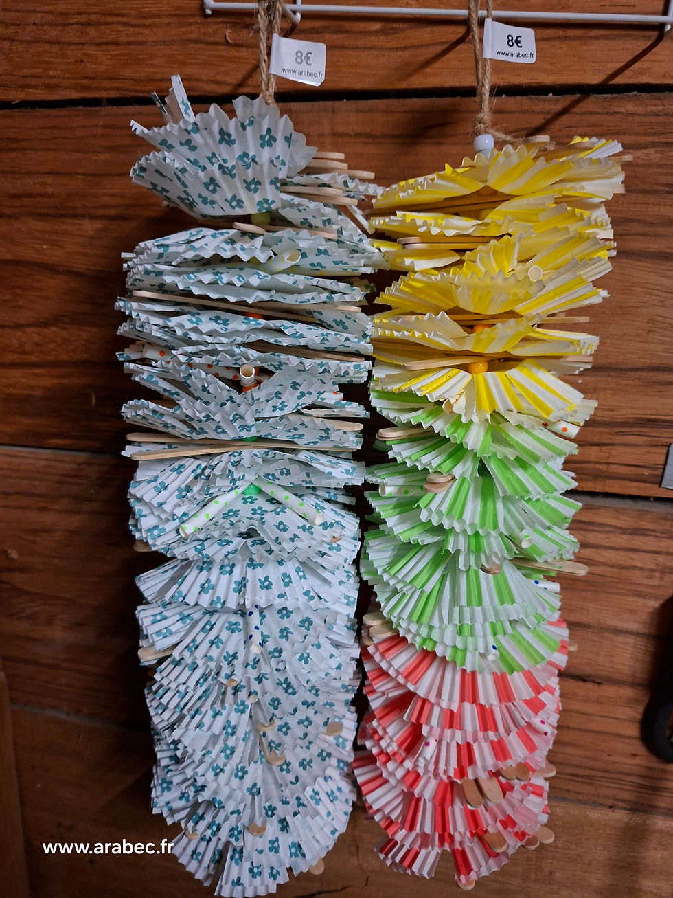 Chez Arabec, chaque jouet est pensé pour éveiller, amuser et occuper vos compagnons à plumes, toujours avec passion et fait main en France.