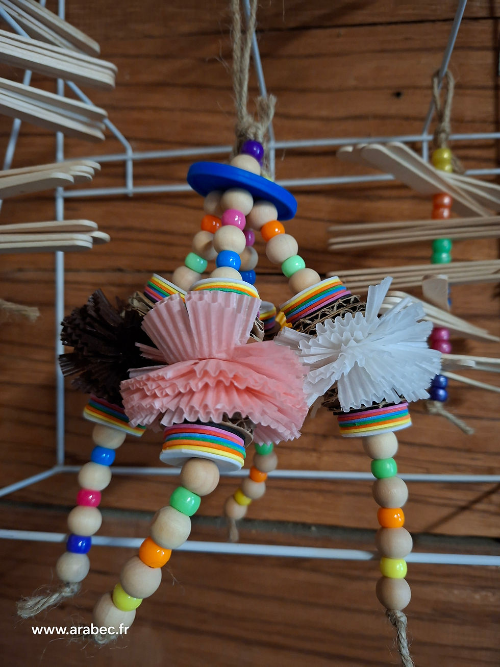 Chez Arabec, chaque jouet est pensé pour éveiller, amuser et occuper vos compagnons à plumes, toujours avec passion et fait main en France.